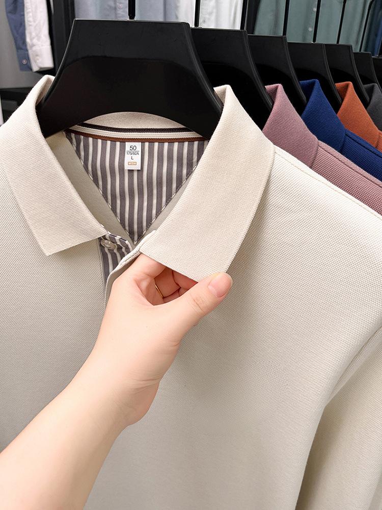 2025 autumn new men’s POLO shirt, business casual lapel long-sleeved T-shirt, men’s top